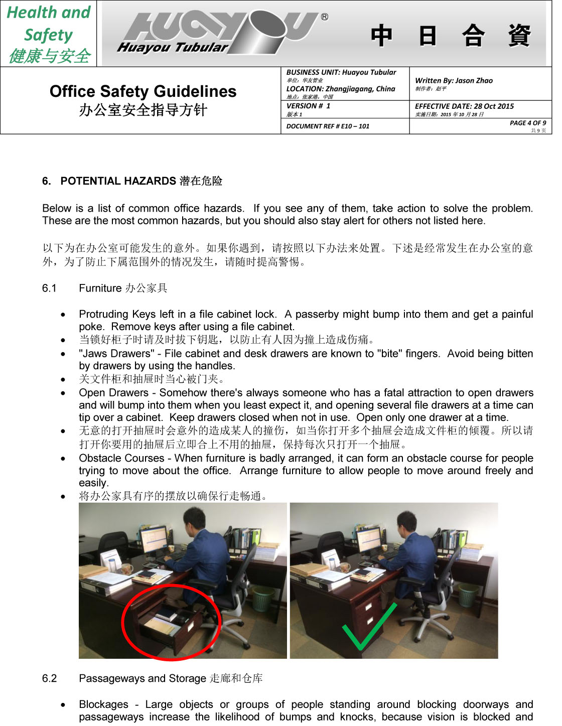 華友辦公室安全指導方針