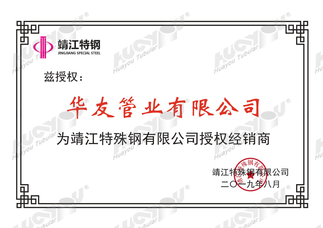 衡陽華菱鋼管經(jīng)銷授權(quán)證書