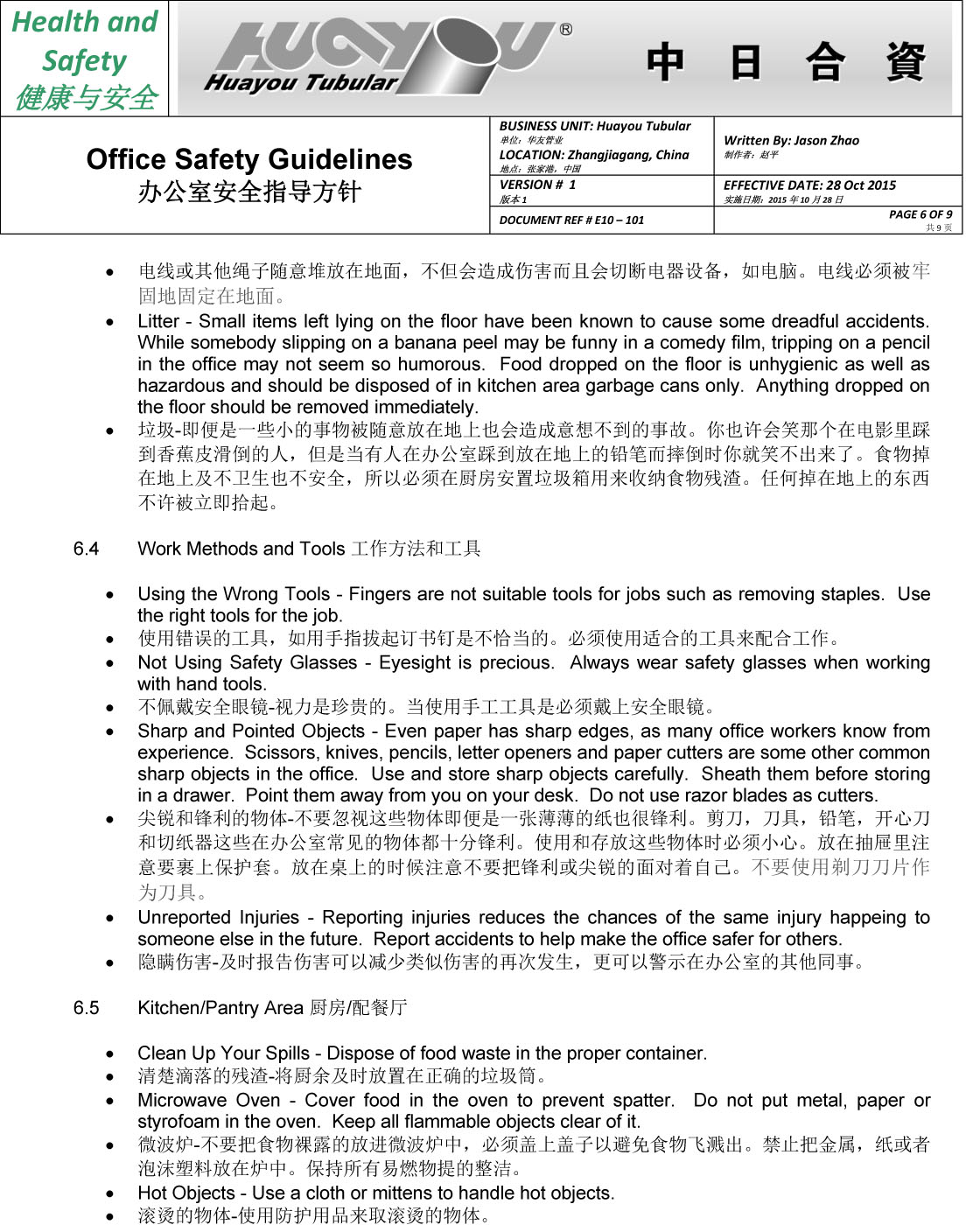 華友辦公室安全指導方針