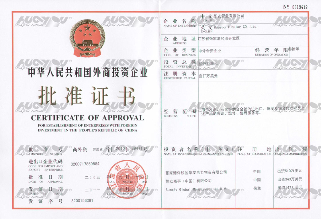 外商投資企業(yè)批準(zhǔn)證書